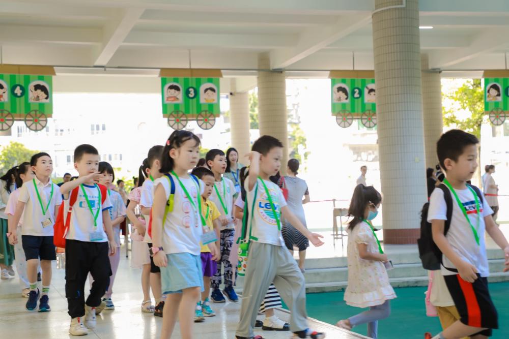 随着“列车广播”响起:“请小朋友们尽快从爸爸妈妈手中接过自己的书包,整理好自己的衣领衣角。请各位家长有序离开专列月台,前往家长等候专区。请小朋友们,按照列车长老师的指挥排好队伍。小朋友们,列车将在5分钟后准点出发,预祝大家旅途愉快!”孩子们朝身后的爸爸妈妈们挥手告别,在爸爸妈妈的目送下踏上了小学生活的列车。