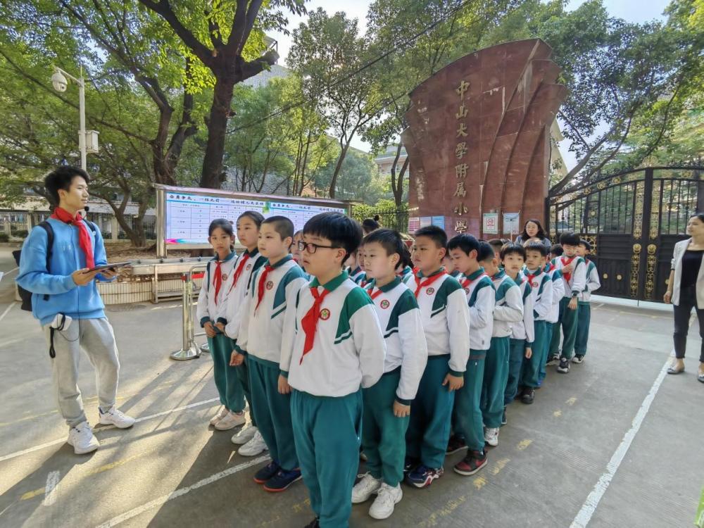 三年1班的孩子们排着整齐的队伍,跟随在中山大学青年志愿者协会的哥哥姐姐们左右,认真听他们详细的讲解。