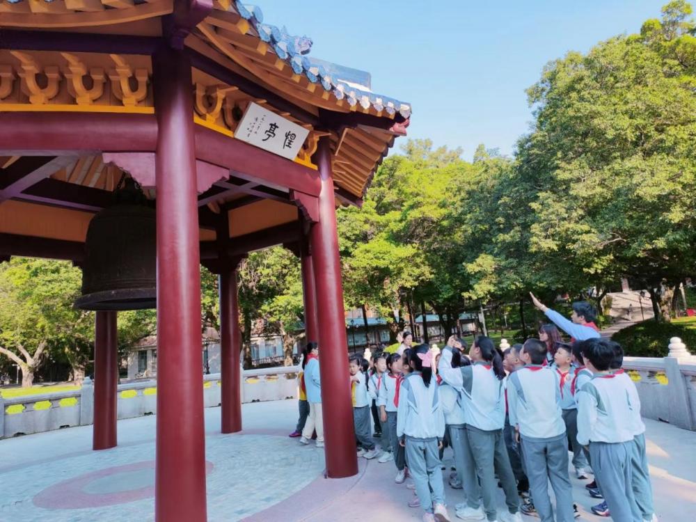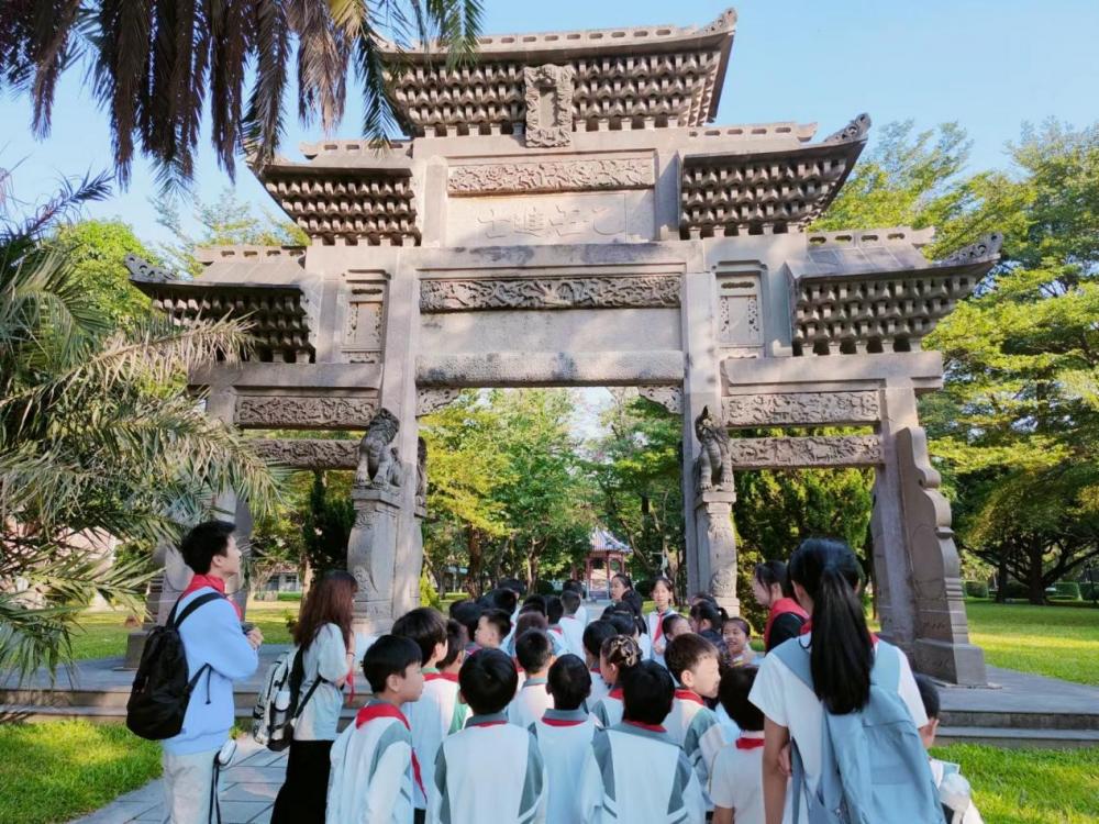 秋风习习,古树婆娑,小学生们步履轻盈,在志愿者们带领下穿过中山大学校园的大门,穿行在绿树掩映的林间道上,清水砖墙的模范村、古朴厚重的“乙丑进士”牌坊,幽静的氛围和孩子们活跃的情绪相得益彰。