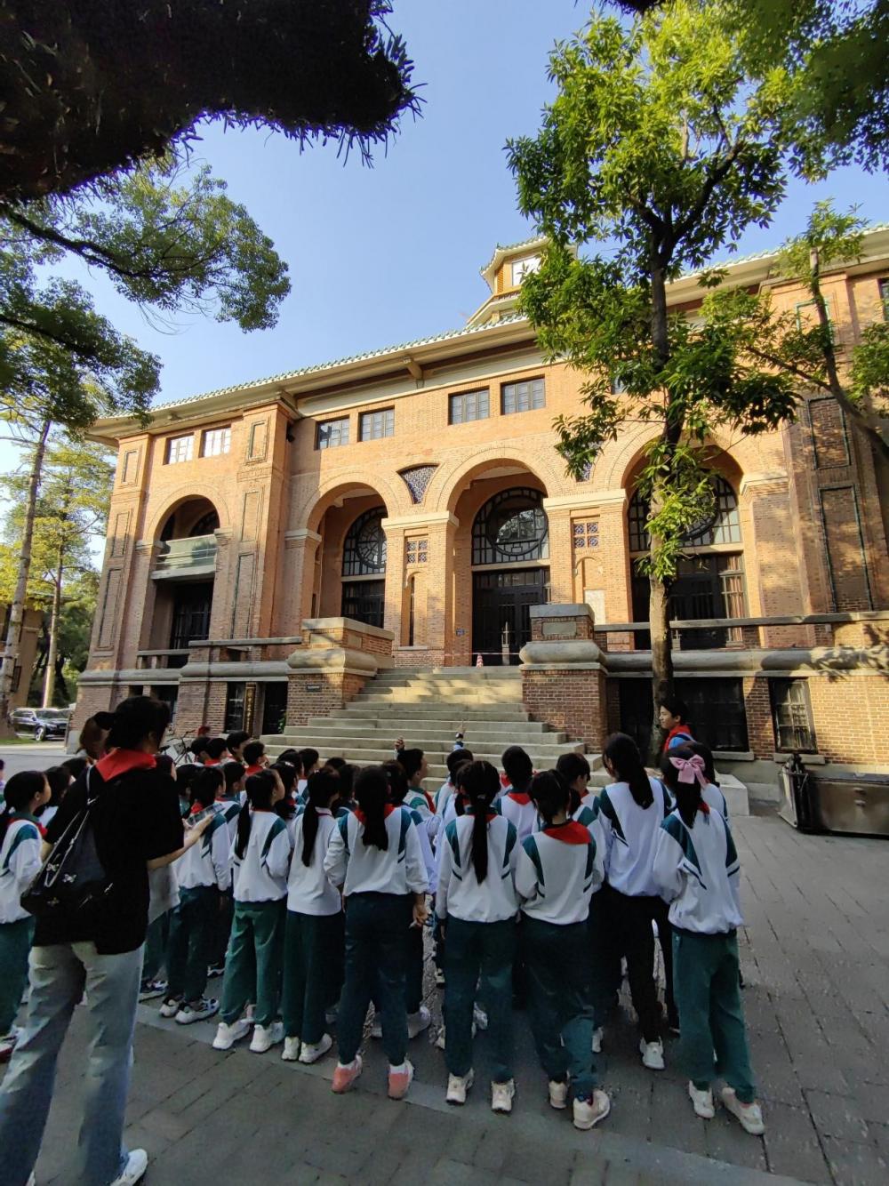紫色琉璃瓦的惺亭、栩栩如生的孙中山铜像、气势恢弘的格兰堂、陈寅恪故居,还有红墙翠瓦的怀士堂,都引得孩子们赞叹不已。马丁堂南门外生动有趣的石狮,更是让孩子们的眼睛为之一亮。