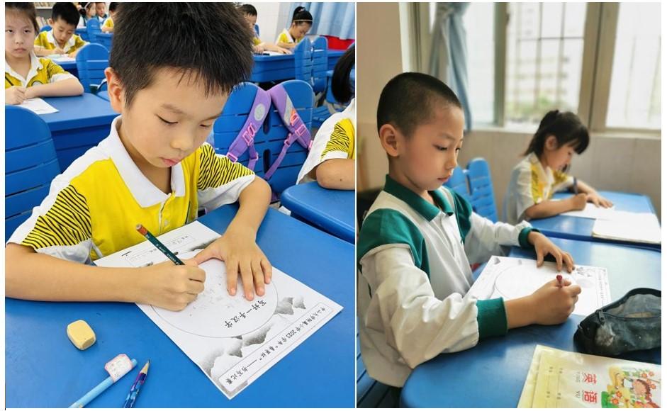 看!一、二年级的孩子们把对祖国文化的热爱倾注到一个个汉字的书写上!一支小小的笔在他们手中轻舞,一个个规范、美观的汉字顷刻而就。看看他们的作品——字体美观,结构匀称,笔画流畅,无不洋溢着笔墨之香、文雅之风。