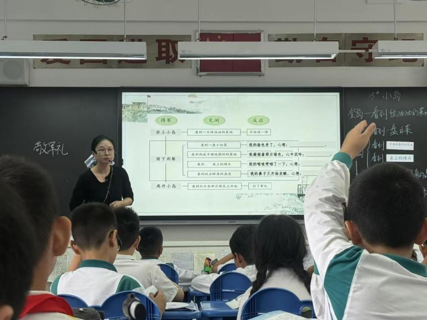 李舒夷老师执教五年级上册《小岛》一课,精准锚定“以将军口吻讲故事”的核心语文要素,紧扣“文学阅读与创意表达” 学习任务群分层推进教学,将复述难点拆解为具体可操作的学习方法;同时巧妙融合背景资料深化学生情感体验,把爱国主义教育与语言实践深度融合,实现了语文工具性与人文性的统一。